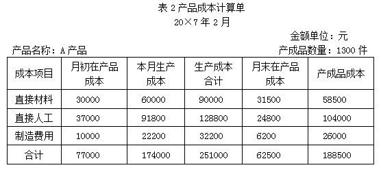 20×7年2月与A产品有关的资料如下: