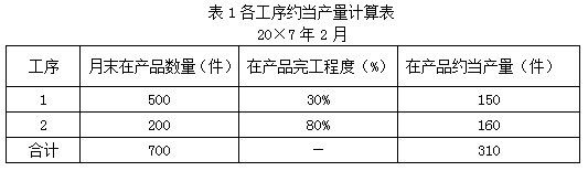 (1)本月完工产成品1300件。月末在产品数量及完工程度为:第一道工序500件,本工序在产品完工程度相当于完工产成品的30%;第二道工序200件,本工序在产品完工程度相当于完工产成品的80%。